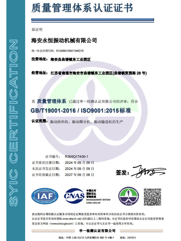 質(zhì)量管理體系認證證書